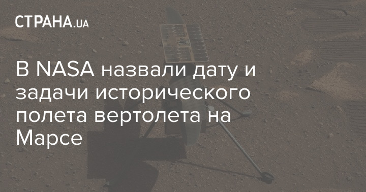 Предварительно дата исторического старта назначена на 11 апреля. В планах вертолета - сделать аэрофотосъемку местности, окружающей марсоход "Perseverance" ("Настойчивость" - Ред.). Во время первого полета вертолет должен подняться на высоту в три метра над поверхностью планеты.