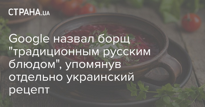 Проект Google Arts & Culture опубликовал список десяти "традиционных российских блюд", в который попал и борщ. Перечень обнародован в рамках проекта "Раскуси Россию", созданного в сотрудничестве Google Россия и Федерального агентства по туризма РФ.
