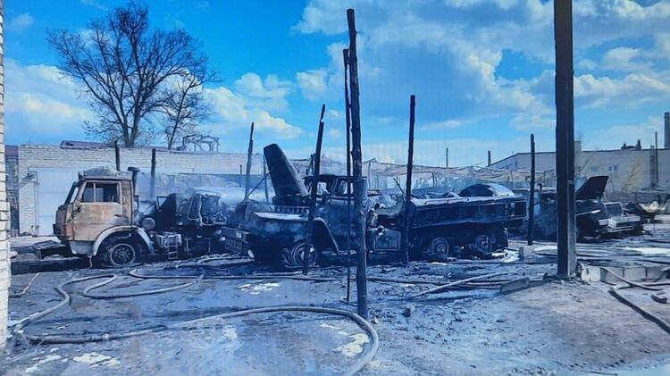 В территории военной части загорелся бензобак автомобиля, огонь перекинулся на четыре бензовоза. В результате пожара пострадал боец ВСУ, его доставили в больницу в городе Кременная.