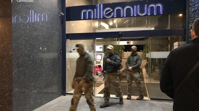 Киевский БЦ Миллениум с силовиками на входеАвто силовиков у БЦТранспорт правоохранителей