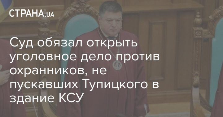 Суд постановил внести в ЕРДР сведения о преступлении сотрудников Госохраны против судьи Конституционного Суда Александра Тупицкого, которые не пускали его на рабочее место, и открыть уголовное производство по данному факту. Текст постановления суда имеется в распоряжении "Страны". Ранее аналогичное решение было принято в отношении другого судьи - Александра Касминина.
