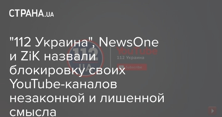 Телеканалы "112 Украина", NewsOne и ZiK считают блокировку своих каналов в YouTube незаконной.