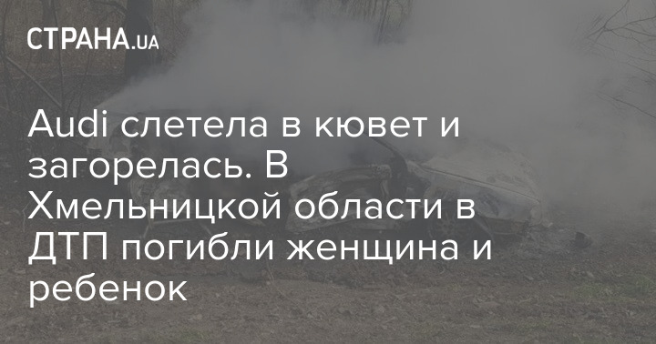 Audi слетела в кювет и загорелась. В Хмельницкой области в ДТП погибли женщина и ребенок