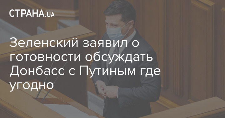 Президент Украины Владимир Зеленский заявил, что готов обсуждать вопросы урегулирования ситуации на Донбассе с президентом РФ Владимиром Путиным в любом месте.