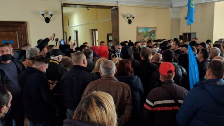В "красном" Николаеве протестующие против ограничения работы транспорта прорвались в мэрию. Фото: НикВести