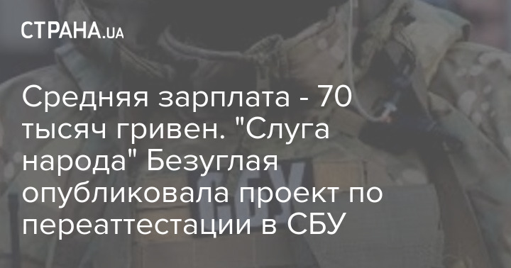 Средняя зарплата - 70 тысяч гривен. "Слуга народа" Безуглая опубликовала проект по переаттестации в СБУ