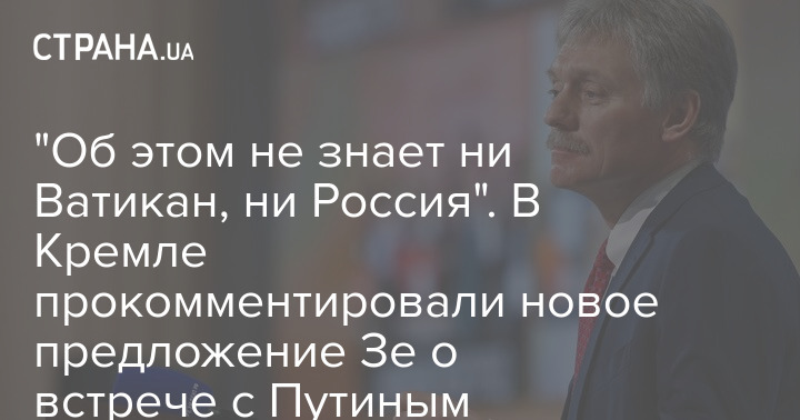 "Президент Зеленский сказал, что это (Ватикан - Ред.) могло быть идеальным местом для встречи. Конечно, об этом пока официально не знает ни Ватикан, ни российская сторона. Мы пока не получали никакой информации о том, что конкретизировано и сформулировано такое предложение", - сказал Песков.