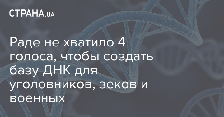 Верховная Рада не поддержала законопроект №4265 о государственной регистрации геномной информации человека. За данный документ проголосовало 222 нардепа при необходимых 226. Таким образом, для принятия законопроекта в первом чтении не хватило всего четыре голоса.