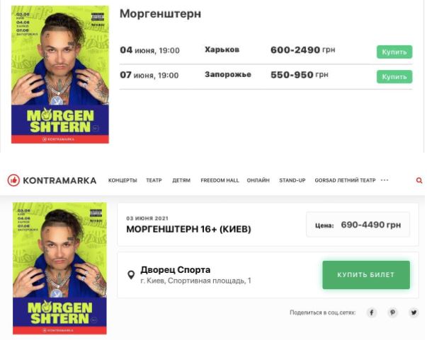 Этим летом у Моргенштерна намечался тур по крупным украинским городам. Он обещал дать концерт в киевском Дворце cпорта (3 июня), в Харькове (4 июня), в Запорожье (7 июня).