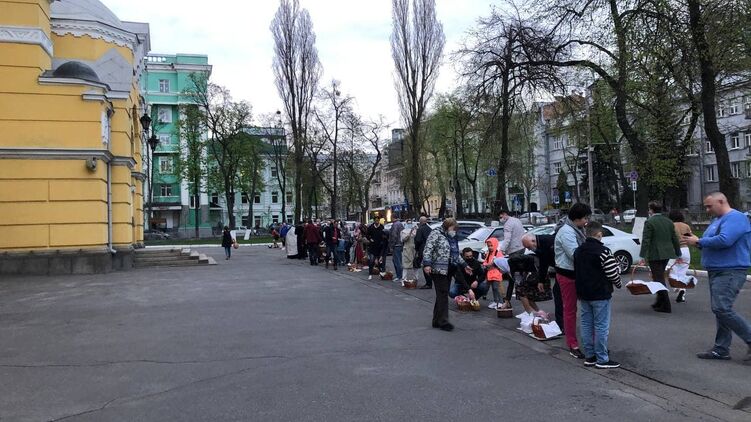 У Владимирского собора выстроилась очередь из желающих освятить паску.