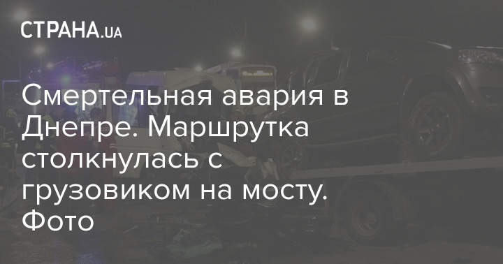 В Днепре на Кайдакском мосту маршрутка "Днепр-Харьков" столкнулась с эвакуатором, который в этот момент грузил автомобиль. Из-за удара погиб водитель маршрутки-микроавтобуса.
