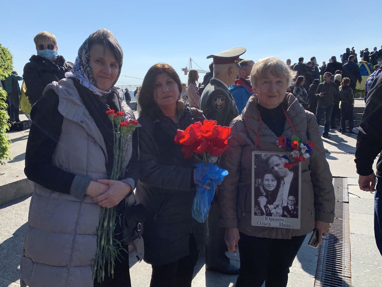 14:06 Одесситы отдают почести героям великой отечественной войны в нескольких местах города, на аллее Славы в парке Шевченко, на 411 батарее, на площади 10 апреля и у обелиска маршалу Жукова на проспекте Небесной сотни. Очень много приходят всей семьей, много детей. По городу ездят колоннами по 4 - 5 авто, из которых во всю громкость звучит песня Этот день победы, размахивают букетами и поздравляют прохожих с днем Победы.