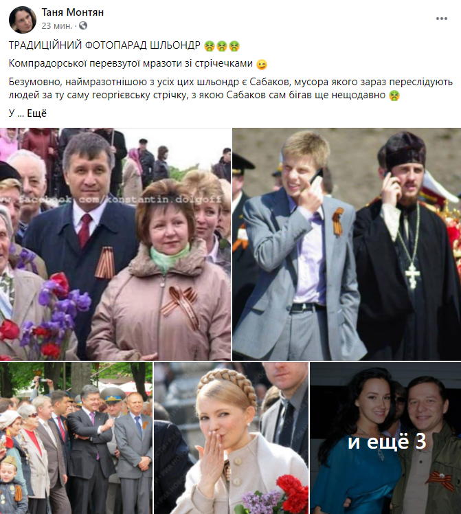 09:02 В Сети вспоминают, как нынешние противники георгиевских лент надевали их во времена Януковича и раньше. Среди них - Аваков, Ляшко, Гончаренко и другие.