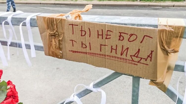 Как пишет сайт, жители Казани стали нести к зданию школы цветы и детские игрушки. Также на ограде появился самодельный плакат, адресованный террористу. На обычной картонке кто-то красным маркером написал: "Ты не бог, ты гнида". Так люди отреагировали на слова задержанного Галявиева о том, что он два месяца назад осознал себя богом.