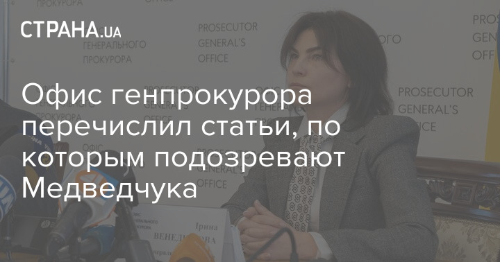 Офис генпрокурора опубликовал официальный пресс-релиз с перечислением всех статей, по которым подозревают народных депутатов от "Оппозиционной платформы - За жизнь" Виктора Медведчука и Тараса Козака. Интересно, что в нем не упоминается передача Медведчуком в Россию данных о местонахождении секретного подразделения ВСУ, которую Ирина Венедиктова упоминала на брифинге 11 мая.