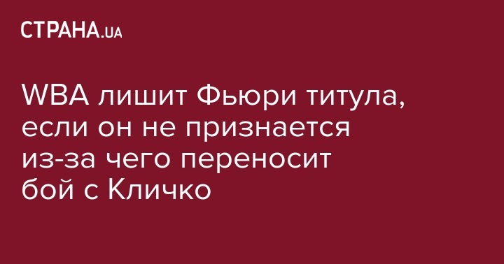 Всемирная боксерская ассоциация (WBA) отберет титул чемпиона у британского боксера Тайсона Фьюри, если он не расскажет о причинах переноса боя с Владимиром Кличко. Об этом сообщает Worldboxingnews.