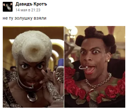 Другие иронизируют, мол, "не ту Золушку взяли" и публикуют фото эпатажного ведущего развлекательного шоу Руби Рода (Крис Такер) из фильма "5 элемент".
