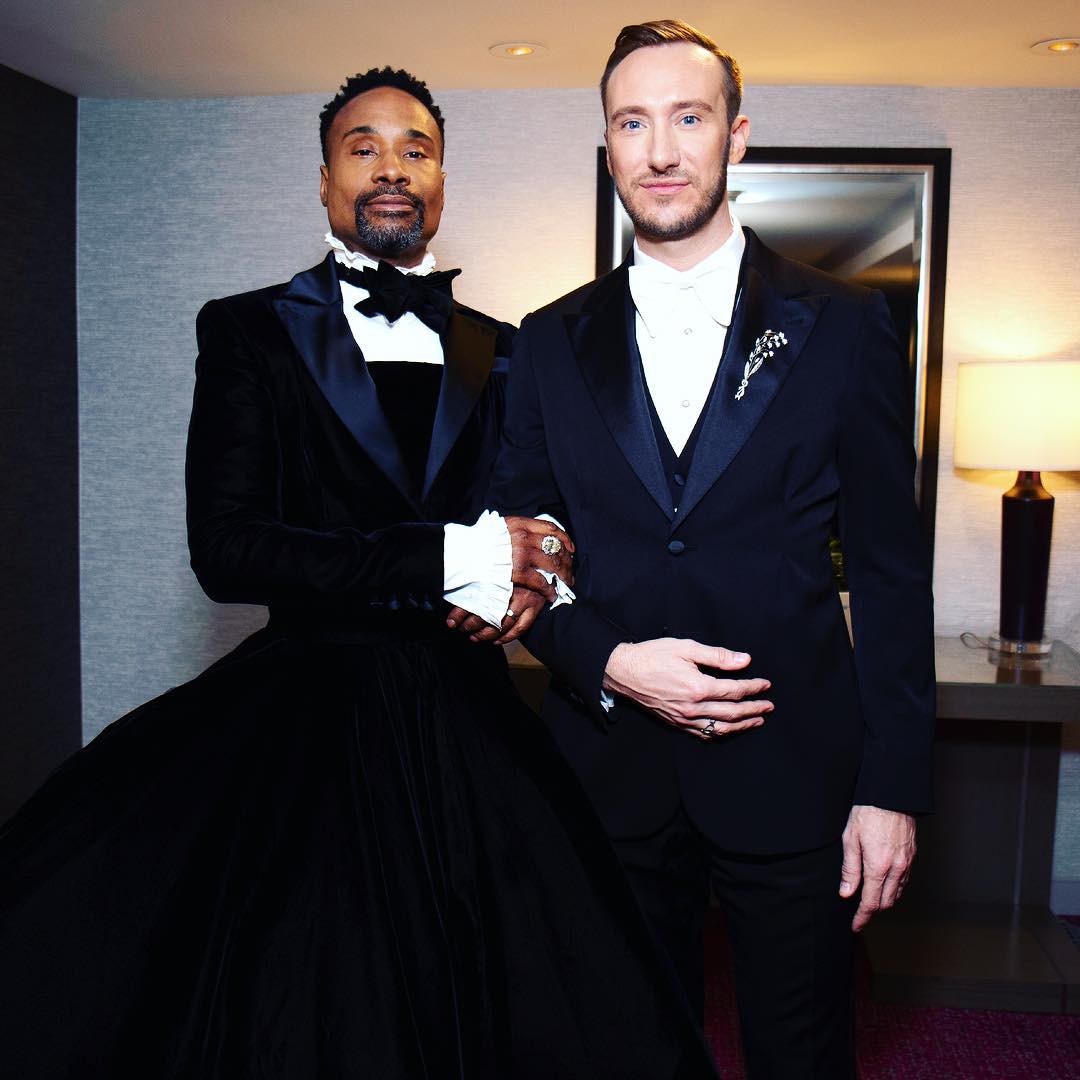В 2020 году Билли Портер пришел на вечеринку Vanity Fair в лиловом одеянии – шляпе и ансамбле с перьями.