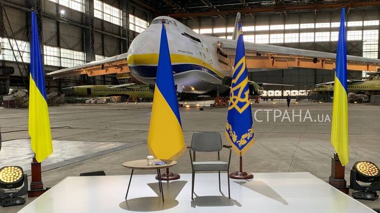 Пресс-конференция президента Украины Владимира Зеленского будет, как и предсказывалось, проходить в ангаре на территории ГП "Антонов", на фоне самолета "Руслан".
