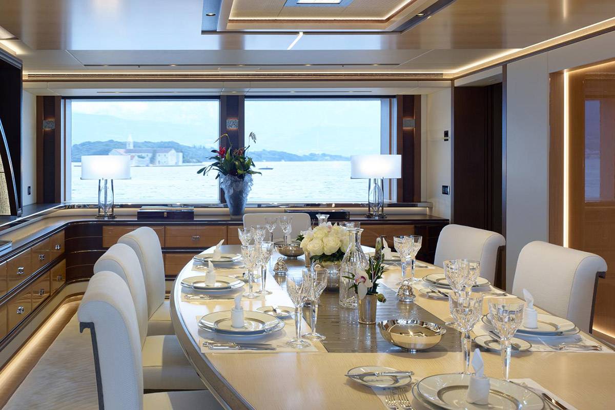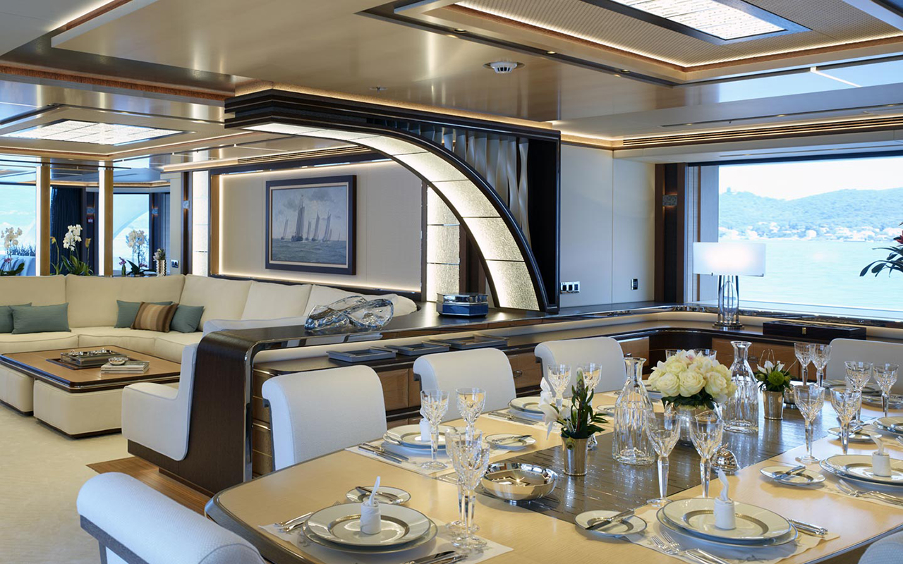 У яхты имеется шесть кают на двенадцать пассажиров, которых обслуживает экипаж из 16 человек. Общая площадь палубы около 350 метров.