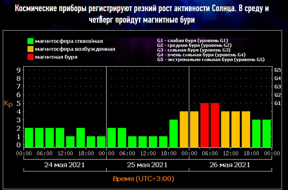 Также сообщали, что в мае 2021 года накроют две очень мощные магнитные бури и семь средних.