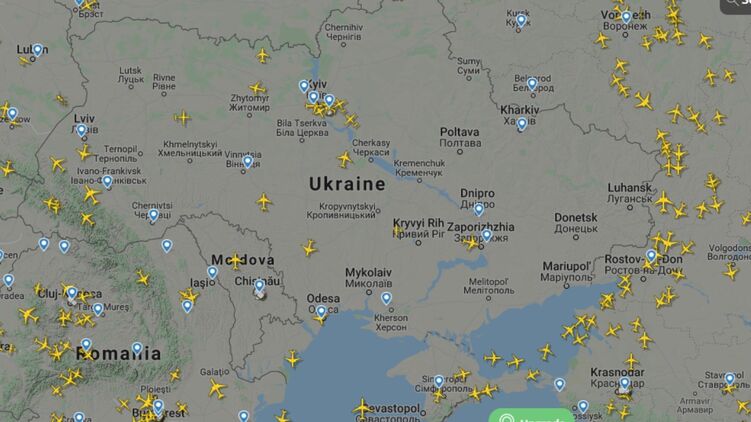 Украина пригласила иностранные авиакомпании в свое воздушное пространство. Фото: flightradar24.com