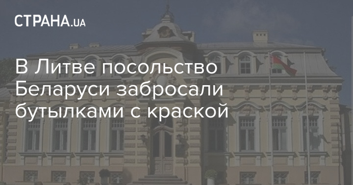 Неизвестные закидали бутылками с краской посольство Беларуси в Литве. Кроме того, правоохранители нашли на месте красно-белые полоски ткани, которые были прикреплены к бутылкам