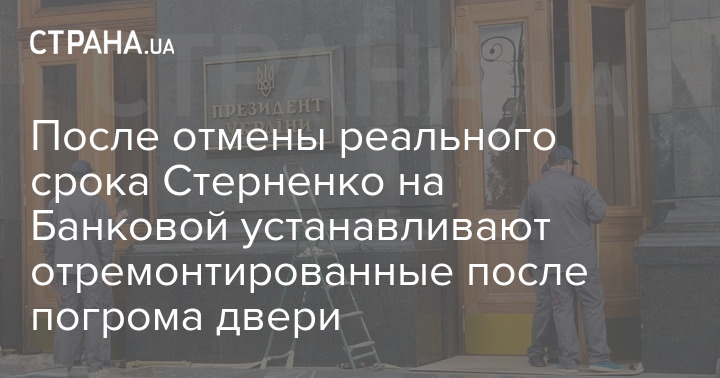 В Офисе президента во вторник, 1 июня, начали устанавливать входные двери, которые были повреждены во время акции протеста сторонников Сергея Стерненко, которые учинили погром на Банковой 20 марта.