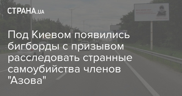 На одной из автострад в окрестностях Киева появились бигборды с портретами погибших при загадочных обстоятельствах членов "Азова". Плакаты содержат призыв провести независимое расследование их смертей.