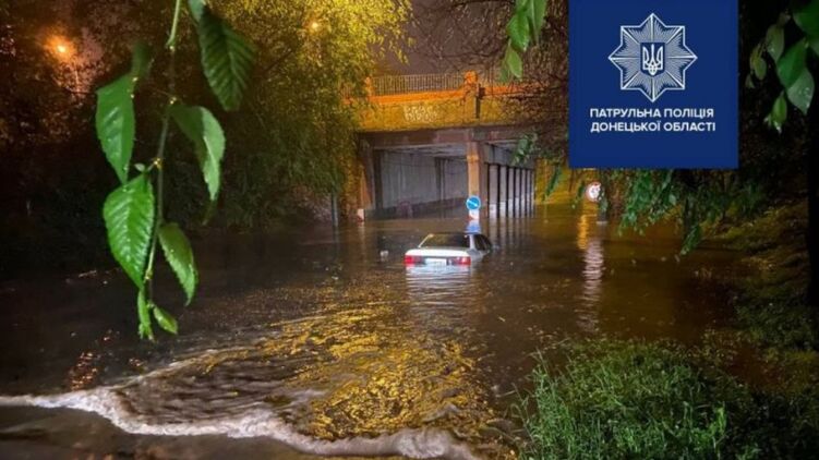 Ливень затопил дороги. Фото: Патрульная полиция Донецкой области