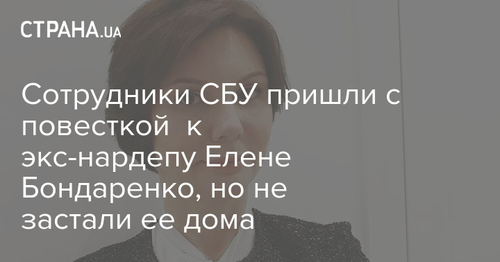 Сотрудники Службы безопасности уже второй раз пришли домой к бывшему нардепу Елене Бондаренко в то время, когда ее не было дома. На этот раз принесли повестку. Об этом она сообщила на своей странице в соцсети.