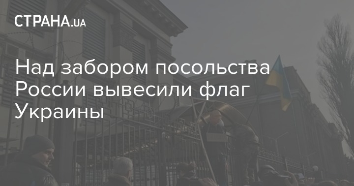 Над забором посольства России вывесили флаг Украины
