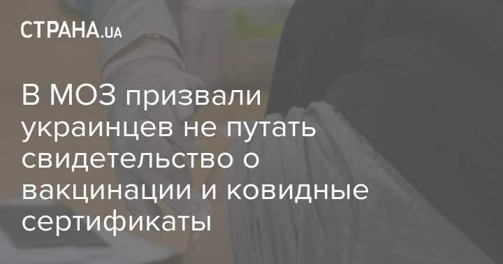 В МОЗ призвали украинцев не путать свидетельство о вакцинации и ковидные сертификаты