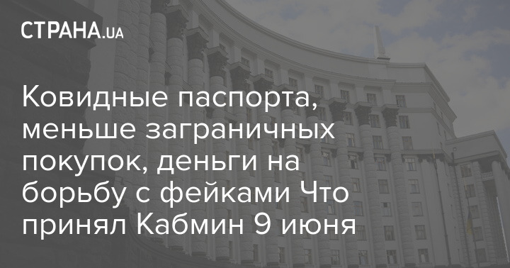 Ковидные паспорта, меньше заграничных покупок, деньги на борьбу с фейками Что принял Кабмин 9 июня