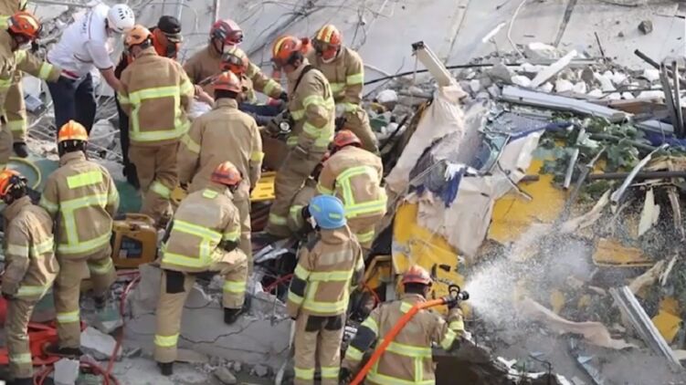В Южной Корее пятиэтажный жилой дом посреди белого дня рухнул на остановку, где как раз выходили пассажиры автобуса. Погибли девять человек, еще восемь ранены.
