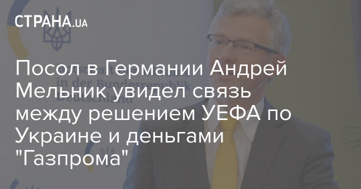 Украинский посол в ФРГ Андрей Мельник нашел подозрительное совпадение в том, что Союз европейских футбольных ассоциаций (УЕФА) удовлетворил российскую жалобу по новой форме сборной Украины сразу после заключения спонсорского соглашения с российским "Газпромом".