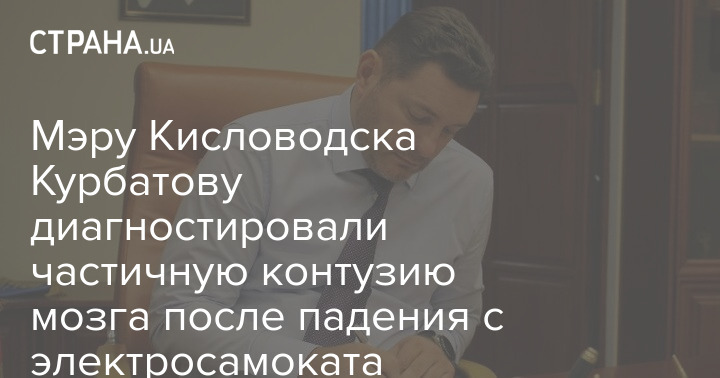 Упавшему с электросамоката мэру российского города Кисловодск Александру Курбатову медики диагностировали черепно-мозговую травму, ушиб головного мозга, ушибы легких и колена, повышенную сатурацию и частичную контузию мозга.