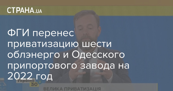 Фонд госимущества (ФГИ) сдвинул сроки приватизации шести облэнерго, оставшихся в собственности государства, и Одесского припортового завода (ОПЗ) на первое полугодие 2022 года.