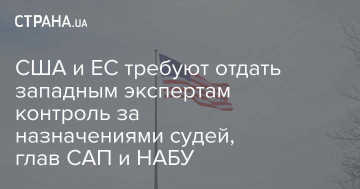 Американское посольство и представительство ЕС в Украине потребовали отдать им контроль за назначениями судей и директора Национального антикоррупционного бюро Украины (НАБУ).