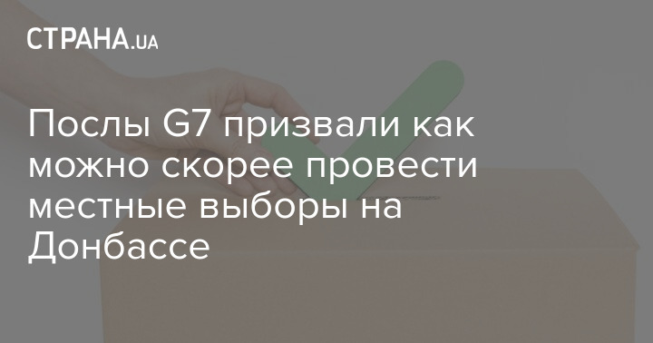 Послы стран G7 в Украине призывают как можно быстрее провести местные выборы в 18 территориальных общинах подконтрольного Донбасса, где они не состоялись прошлой осенью.