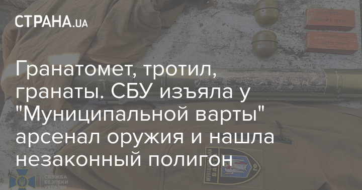 Во время сегодняшних обысков на территории коммунального предприятия Киева "Муниципальна варта" сотрудники СБУ изъяли гранатомет, тротил, пистолет, патроны и другое оружие. Его незаконно привезли из района ООС. Членов "варты" подозревают в организации незаконного стрелкового полигона.