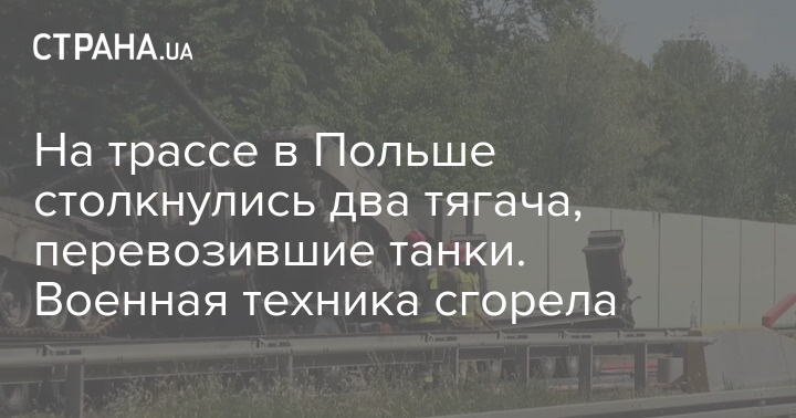 На трассе в Польше столкнулись два тягача, перевозившие танки. Военная техника сгорела