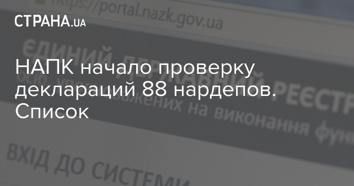 Национальное агентство по вопросам противодействия коррупции (НАПК) начало проверку ряда народных депутатов как в порядке очередности, так и на основании мониторинга образа жизни.