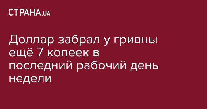 Таким образом, за 1 день гривна уступила в пользу валюты США 7 копеек.