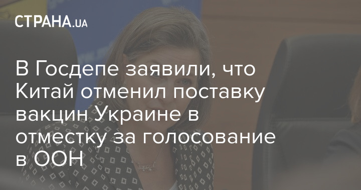 Заместитель госсекретаря США по политическим делам Виктория Нуланд 25 июня заявила, что Китай отменил поставку вакцин от коронавируса в Украину из-за того, что та проголосовала за резолюцию касательно Синьцзяна в ООН.
