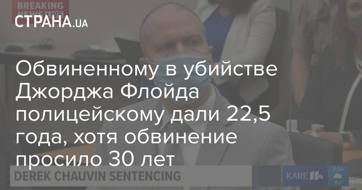 Обвиненному в убийстве Джорджа Флойда полицейскому дали 22,5 года, хотя обвинение просило 30 лет