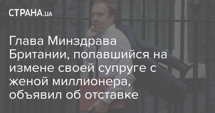 Глава Минздрава Британии, попавшийся на измене своей супруге с женой миллионера, объявил об отставке