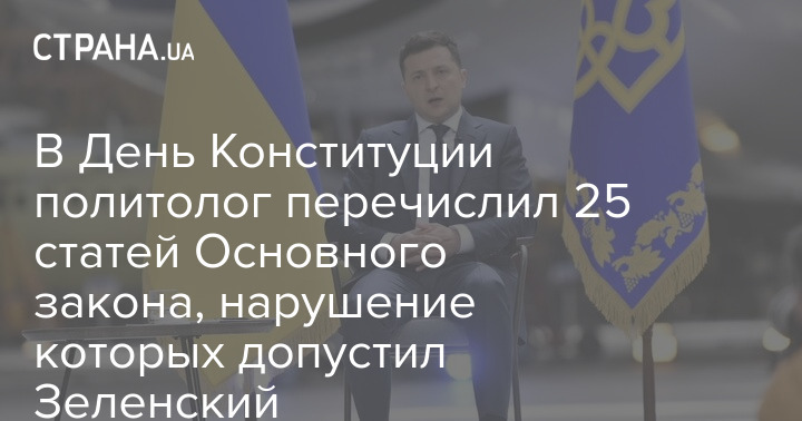 В День Конституции политолог Виктор Ружинский выделил самые громкие нарушения Основного закона, который допустил за два года своего правления президент Украины Владимир Зеленский. Получилось 25 статей Основного закона, но данный список не является исчерпывающим.
