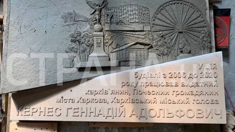 "В этом здании с 2006 до 2020 года работал известный харьковчанин, почетный гражданин города Харькова, Харьковский городской глава Кернес Геннадий Адольфович", - указывается на плите