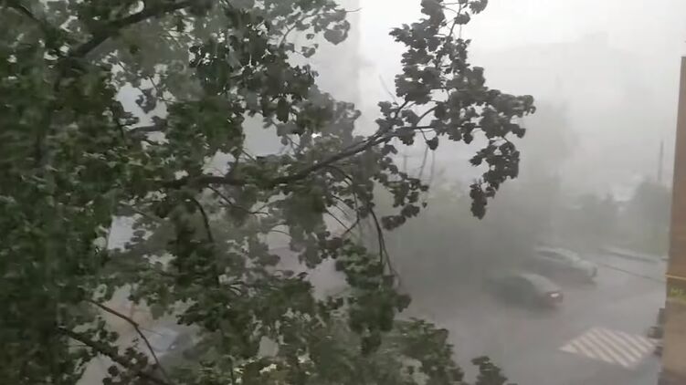 Сильный ливень затопил Москву после аномальной жары. Скриншот с видео